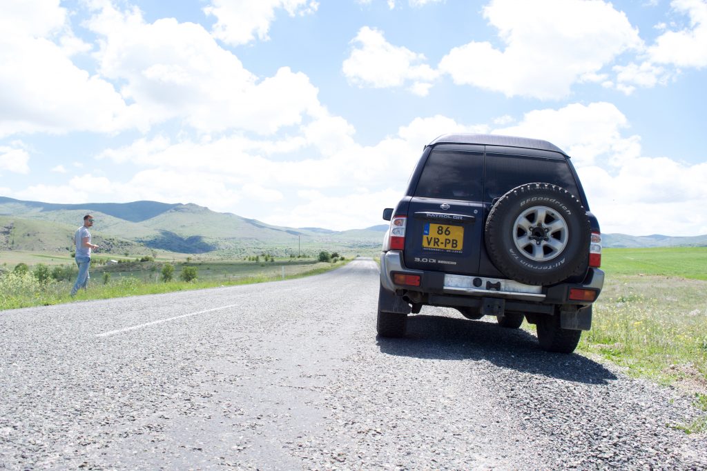 De verheven weg blijkt al snel absoluut niet te bereiden. Waarschijnlijk is hij in de Sovjettijd aangelegd en is er daarna nooit meer onderhoud gepleegd. Zowel links als rechts van de weg hebben dappere chauffeurs hun eigen zandpaden gecreëerd. Soms kan je 50km per uur halen op deze zandpaden, maar meestal gaat het stuk minder hard. Diepe kuilen, modderpoelen en vee op de weg geven flinke vertraging. Dan zijn er nog altijd de ribbels waar ik eerder over schreef. Langzaam ploeteren we met veel plezier voort. Halverwege de route wordt de weg plots iets beter. Er staan woonwagens, een aantal vrachtwagens die we herkennen van de avond ervoor en een flink aantal roestige jaknikkers. We geven gas, maar nog geen 100 meter verder is de weg weer als vanouds dramatisch.