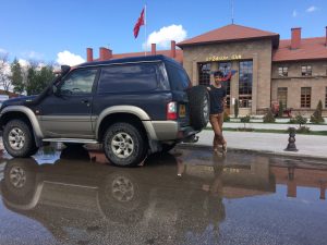 136km en 5 uur later staan we op de volgende kruising. Er is geen blauwe kleur van de beast meer te zien. De modder zit tot op het dak en het stof is door alle kieren naar binnen gekomen. Blij en trots zijn we dat we dit overleefd hebben. We slaan rechtsaf een matig geasfalteerde weg in die na nog geen 20 km veranderd in precies dezelfde weg als waar we vandaan kwamen, terwijl dit volgens de kaart een belangrijker weg zou moeten zijn. Een grote gele weg op google maps… Waaruit wij hadden afgeleid dat die dan ook wel mooi verzorgd zou zijn. De moed zakt ons in de schoenen, maar we rijden door. Uiteindelijk hebben we zo 800 km over niet bestaande Kazakse wegen gescheurd. Het heeft zijn tol van ‘the beast’ geëist. We missen 1 koplamp, de multi-riem piept als een gek bij een stationair draaiende motor en wanneer je de motor afzet borrelt de antivries in het overdrukcompartiment nog een paar minuutjes na.